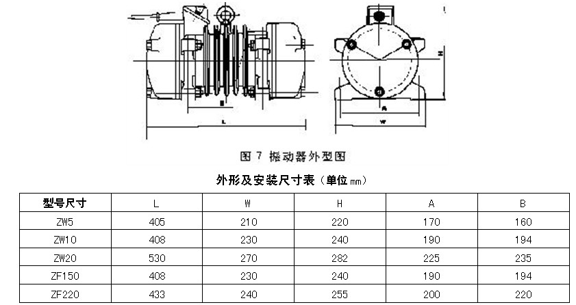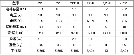 4. 獨特的偏心結構,對稱地分布在軸承外側;其中ZW10、ZF150、ZF220、ZW20型可根據施工情況調整激振力大小。
